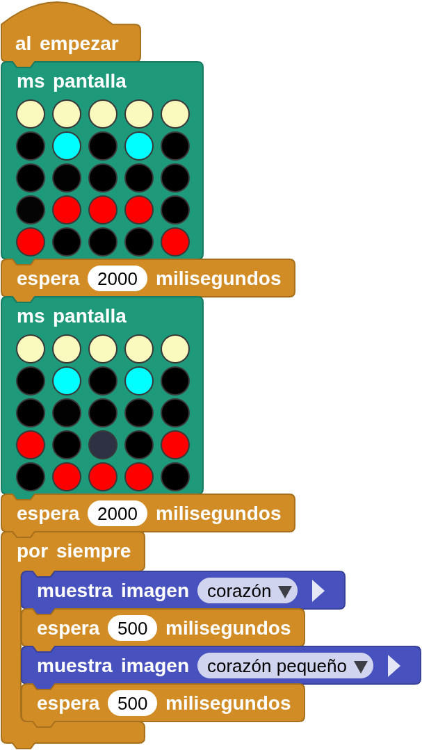 Visualizar durante 3 segundos un icono de cara triste que cambiará, durante 3 segundos, a un icono de cara alegre para pasar a ver permanentemente un corazón latiendo cada segundo.