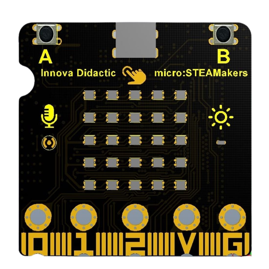 El taller tiene como objetivo iniciarse en la programación de la placa micro:STEAMakers con los actuadores y sensores incorporados través del entorno de programación MicroBlocks.